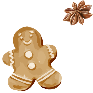 Farine de blé et de seigle, sucre inverti, miel, poudre à lever: bicarbonate d’ammonium et de sodium, épices, décor: sucre, blanc d’oeuf, colorants naturels: carmin de cochenille, curcumine, chlorophyline cuivrique, extrait de paprika.